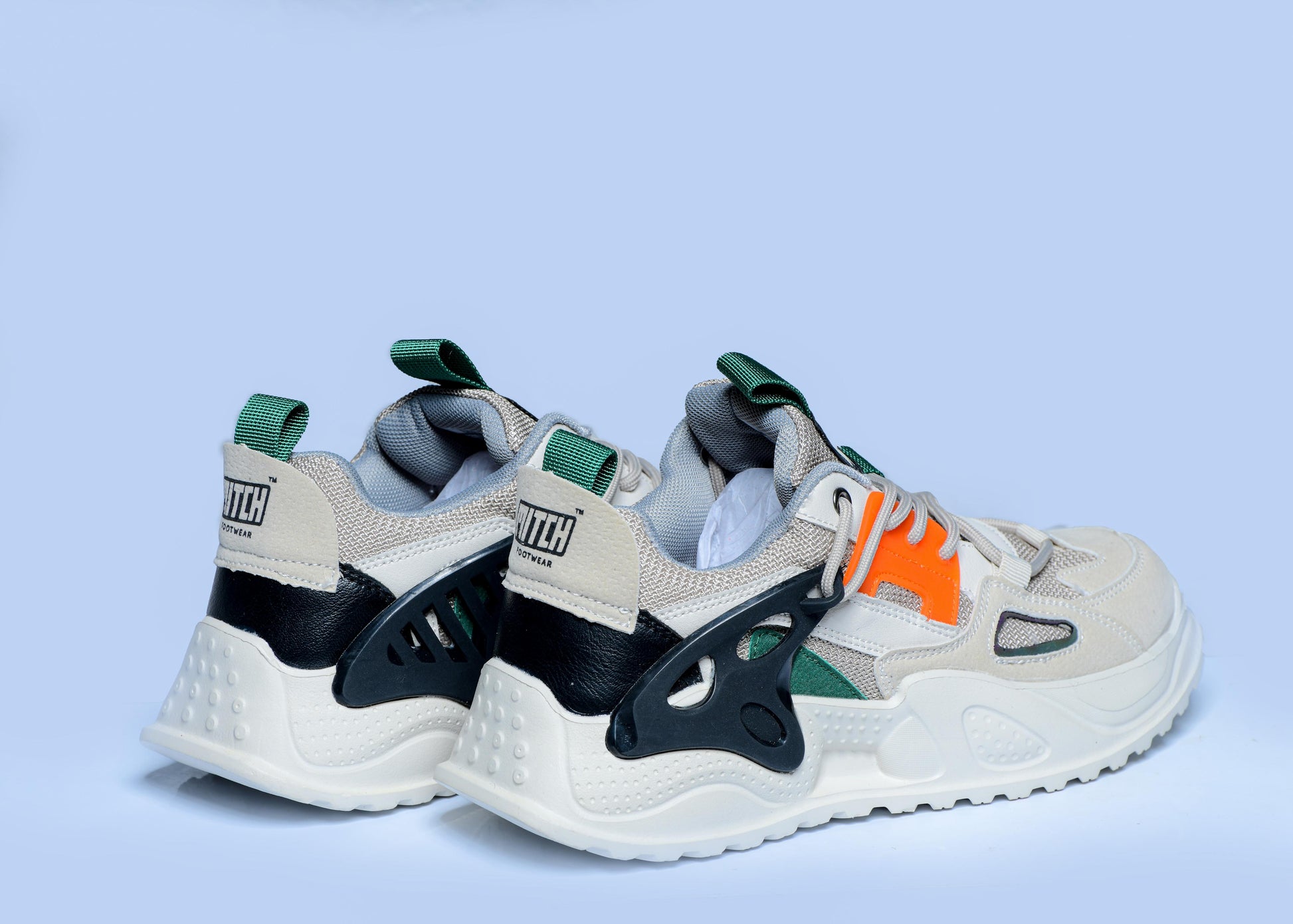 Almost SOLD OUT! The stunning White and Grey Urban Sneaker with touches of Green and Orange to add a zest of color. Versatile, Trendy, Exclusive must - have colorway for your collection!